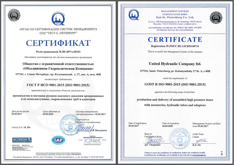 - Май - сертификация компании Гидравия на соответствие требованиям СМК по ISO 9001.